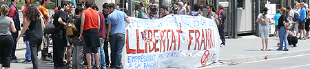 Així el dimecres 7 de maig a les 18:30 concentració a Plaça Sant Jaume per demanar la llibertat d'en Franki i el dissabte 10 de maig a les 18 a Plaça Universitat manifestació.